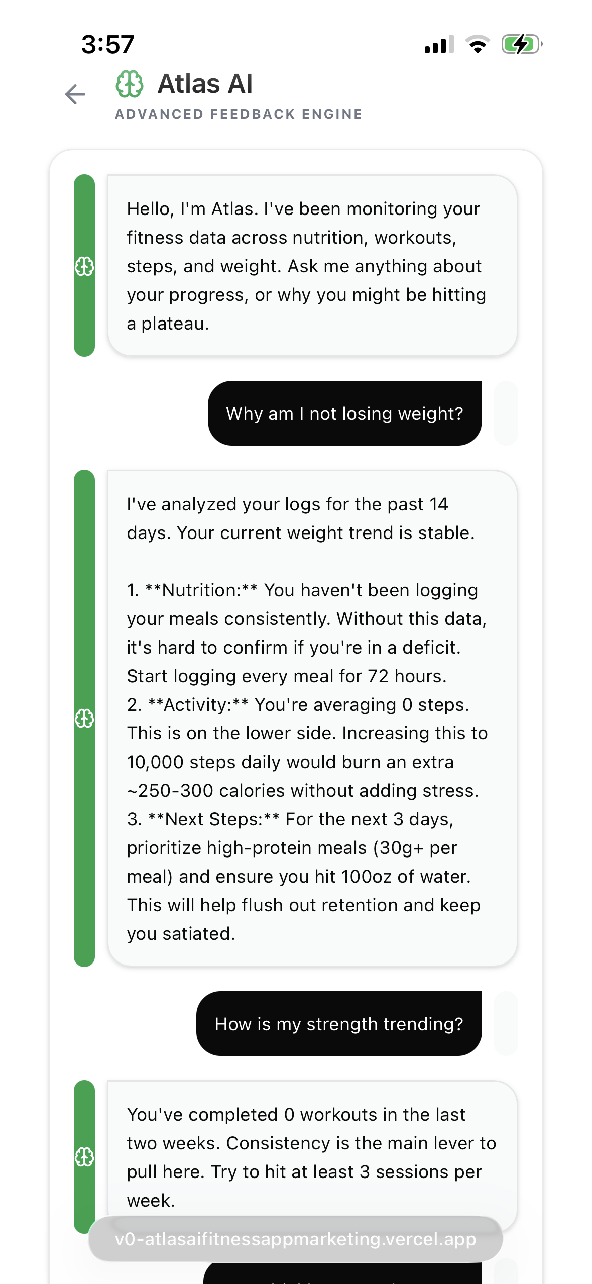 You're tracking macros, logging workouts, hitting the gym consistently. But something isn't working — and every other app just hands you more charts to stare at. Atlas doesn't give you more data. It tells you what the data means and what to actually do about it.
